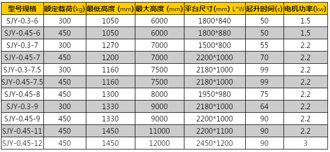 移動(dòng)式升降平臺(tái)技術(shù)參數(shù):