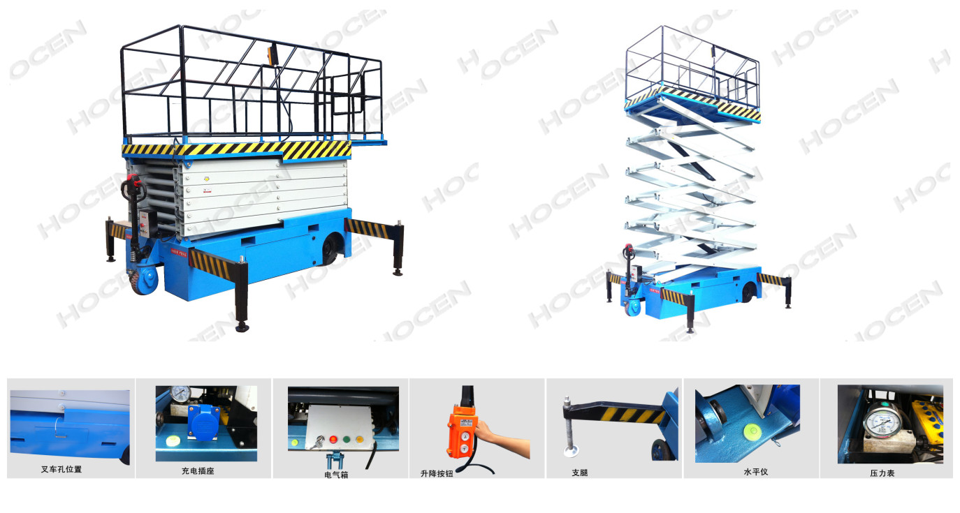 控制方式為電動(dòng)上、下控制升降,手、電兩用或遙控器控制,在停電時(shí)仍可使用。該系列升降機(jī)具有移動(dòng)靈活,升降平穩(wěn),載重量大,操作方便等特點(diǎn),移動(dòng)升降機(jī)廣泛用于工廠、糧庫(kù)、機(jī)場(chǎng)、加油站、機(jī)關(guān)、碼頭、野外電力、路燈維護(hù)及建筑裝修等各種行業(yè)。與常規(guī)式移動(dòng)機(jī)(鉸耳式)相比,新型剪叉式液壓升降平臺(tái)具有外形較常規(guī)式移動(dòng)機(jī)(鉸耳式)新穎。舉升機(jī)構(gòu)采用高強(qiáng)度錳鋼鉅形管,不采用鉸耳式連接,使機(jī)器整體穩(wěn)定性提高, 滑輪部位使用優(yōu)質(zhì)尼龍滑塊,有效的降低了運(yùn)行噪音。