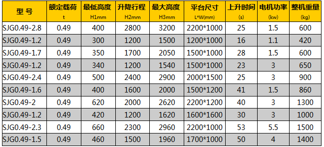 固定式升降平臺(雙叉)技術(shù)參數(shù):