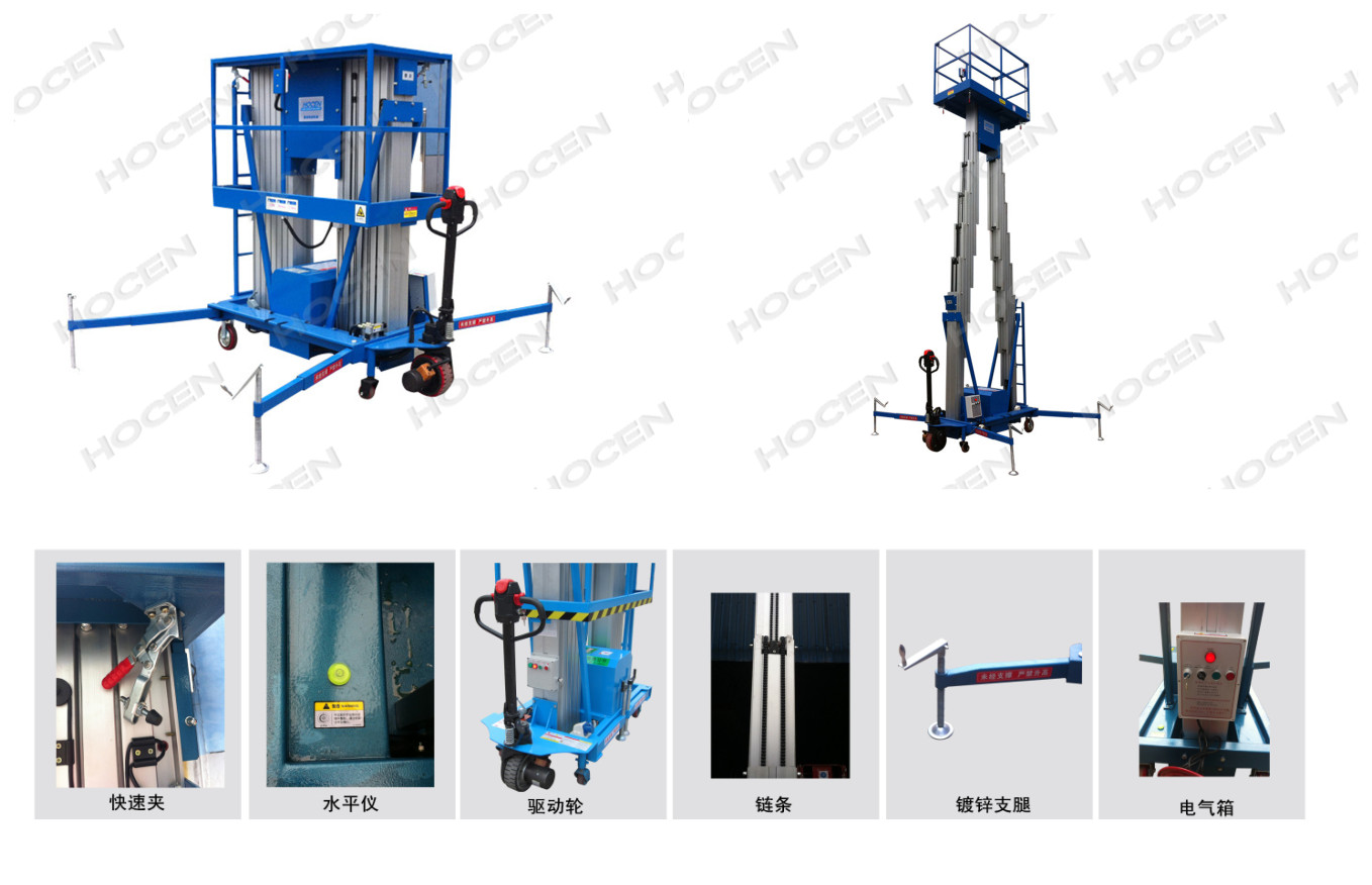 在鋁合金升降平臺基礎上增加了自行走功能,移動時由液壓馬達驅動升降臺行走,人工轉向。行走及升降臺均為直流電源動力。升降臺自身具有行走及轉向驅動功能,不需人工牽引,不需外接電源,移動靈活方便,令高空作業(yè)更方便快捷,是現(xiàn)代企業(yè)高效、安全生產(chǎn)之理想高空作業(yè)設備。