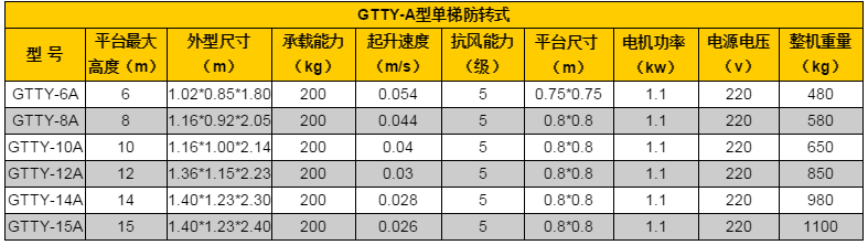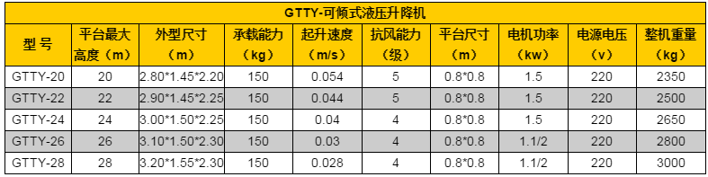 套缸式液壓升降平臺技術(shù)參數(shù):