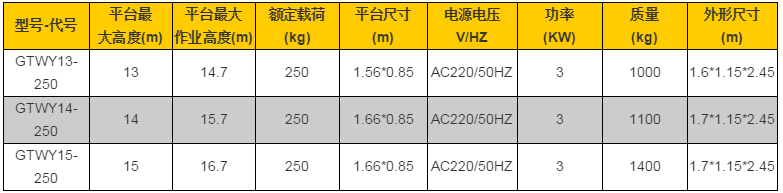 多桅式鋁合金升降平臺(tái)技術(shù)參數(shù):
